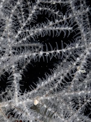 Polyps of Paramuricea clavata, yellow variety, bearing eight hairy tentacles