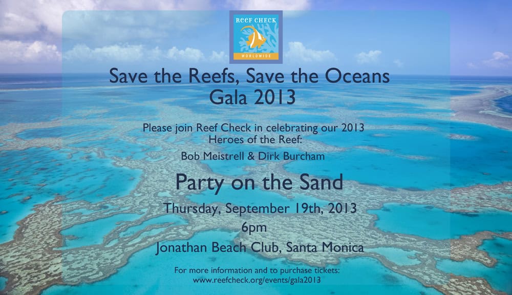 Tickets are on sale for this year’s Save the Reefs, Save the Oceans Gala to be held Thursday, September 19 at the Jonathan Beach Club in Santa Monica, California. The evening will recognize the contributions of our “Heroes of the Reef” each having demonstrated an exemplary commitment to ocean conservation.
