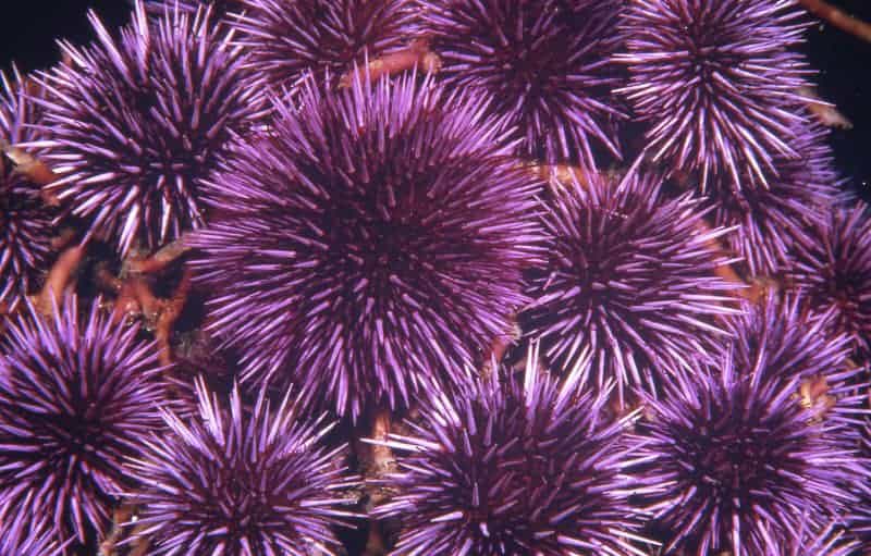 This combination of extreme warm water events, an absence of urchin predators, and extensive purple urchin recruitment, led to a large-scale shift from kelp forests to an alternate state composed of areas dominated by urchins. This state of the reefs is referred to as “urchin barrens”. Though some organisms thrive in barrens, most do not. Many of the services that kelp forests provide such as fisheries, mediation of coastal erosion, biomass production and carbon sequestration are lost when forests turn into barrens.