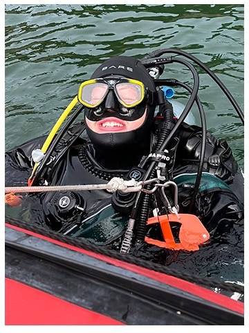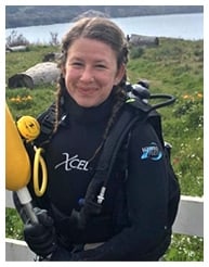 Diana Hollingshead graduated from the University of Oregon with a degree in Biology with heavy emphasis on Marine Biology. She became a PADI IDC Staff Instructor in 1997 and a DAN Instructor in 2010. When she became an AAUS Scientific Diver in 2013, she started as a volunteer diver for the Oregon Department of Fish and Wildlife, completing underwater Marine Protection Area surveys. In 2015, she became a volunteer Scientific Diver on the United States Forest Service dive team. She helped develop the volunteer diver training program and educates volunteer divers at the Oregon Coast Aquarium, where she has over 6000 volunteer hours. In 2018, she was inducted into the Women Divers Hall of Fame and currently serves as a board member.