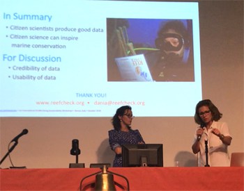 Dania Trespalacios, RC Worldwide Tropical Program Director, and Julian Hyde, RC Malaysia General Manager, shared stories from the field where Reef Check data is used for management, and where Reef Check EcoDivers are engaged in marine conservation. Examples ranged from MPA management in the Dominican Republic and Lionfish Containment in Grenada to the use of Reef Check data by government management agencies in California, USA and Jamaica to management and conservation projects in Malaysia. Dr. Georg Heiss and Dr. Moshira Hassan, of RC Germany and RC Egypt, presented on the many lessons learned after 20 years, and the challenges that lay ahead for RC Egypt.