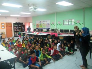 | Net removal Efforts by RCM and Tioman Marine Conservation Group | Oil spill cleanup by RCM and Tioman Dive Association | Norhasniezah conducting a educational program with students from the local school |