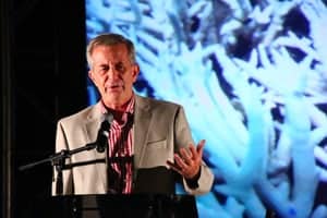 | Dr. Bill Bushing graciously accepts his alongside his son, Reef Check Board Chair Helen Brierley and Reef Check Board Member Linden Wolbert | Reef Check Executive Director Dr. Gregor Hodgson addresses guests |