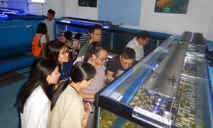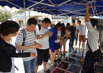 | Planning meeting between Paradise Foundation and Shenzhen University for Marine Conservation Issues Course | Team problem solving and presentations Beijing University | Keith Kei of HK Baptist University and Majian of Paradise inspect a coral aquaculture facility run by Shenzhen University |