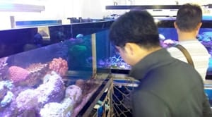 | Discussing profits and organism sizes with vendors at a Shenzhen fish market |