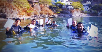 Lastly, we extend thanks to the national and international scientific team, Maria Claudia Diazgranadaos, Juan Pablo Caldas Aristizabal and Edgardo Ochoa of the Conservación Internacional; Raúl Navas and Cesar Garcia of Invemar; Ruben Torres and Nicolas Florestal of Reef Check; Oscar Delgadillo of MoAm; and Nuphar Charuvi. To all of you, thank you for uniting us in this process of citizen science training.