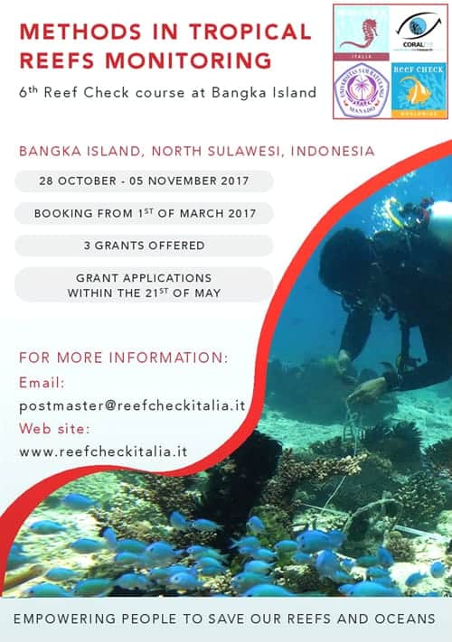 Visit http://reefcheckitalia.it/bangka-bando-2017.html for more information. For further details contact Reef Check Italy at postmaster@reefcheckitalia.it