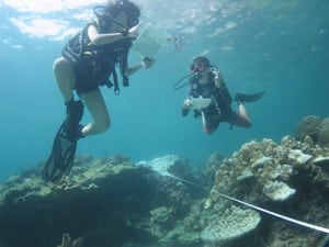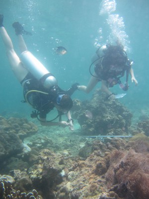 While humans have a great capacity to destroy, we also have the ability to heal. Therefore, Concordia seeks to educate youth and adults globally through our Marine Ecology Program collecting data and documenting changes. Concordia hands over the torch of knowledge to us, the young; the torch that bears the sorrows of our world. Concordia's program is the only one of its kind that conducts Reef Check in the exact same location for the duration of five years. This year marks the ninth year of Concordia's participation in this program. This is the fourth year on Concordia's second reef, which is off the east coast of Koh Phi Phi, Thailand. Our home away from home—the Manta Queen III—is filled to the brim with 23 students and 6 chaperones. The entire group did a total of 598 dives before Reef Check data collection began. Students collect data, analyze, and gain real world experience to a degree where it matters. Reef Check data is gathered over a span of 2 days with a total of 16 collection runs. Students were divided into four teams of six, and each team did two runs of data collection per day. These dives were so intensive that a single dive could take up to one hundred minutes!