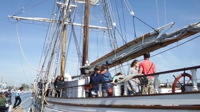 For the pilot phase, the STEM-based program will focus on Title I middle schools located in Los Angeles County on a first-come, first-served basis. During each three-hour program, students are introduced to the local marine ecosystem in the Los Angeles Harbor aboard one of LAMI's two tall ships, the Irving Johnson and Exy Johnson. These 110-foot traditionally rigged vessels were “purpose built” for youth education at sea. In addition to offering a close-up look at marine life, students become part of a working sailboat crew and learn the importance of teamwork.