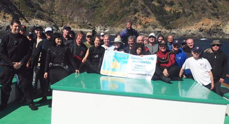 In early May, Reef Check launched a Kickstarter campaign to run an expedition up the Big Sur coast to survey 9 new sites that would start filling in data gaps between San Luis Obispo and Monterey Bay. The campaign was a huge success. The trip created a buzz among our volunteers and recreational divers alike and we had no problem filling the boat with eager divers.