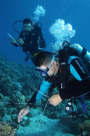 A team of three German EcoDiver Trainers, led by Christian von Mach (Reef Check Course Director and Coordinator of the Red Sea Environmental Centre) operated the training program that gave EcoDiver qualification to 14 local divers with diverse professional backgrounds. Participants came from The Royal Marine Conservation Society of Jordan, the Aqaba Marine Park, the Marine Science Station (associated with the University of Jordan), the Royal Jordan Naval Force, the Aqaba Port Authority as well as Instructors and Divemasters from local dive centers.