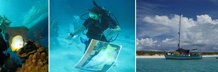 As part of the Reef Check team, O.B.E. analyzed various reefs throughout the Bahamas this summer. Our goal was to assess and compare reefs inside the Exuma Land and Sea Park with other non Marine Protected Areas off of Conception, Long Island and the Northern Exumas. In total, we collected data from five locations with plans to establish more transects as part of a continued monitoring system. Each Reef Check diver gained awareness of their own relationship to the sea while gathering pertinent information as to coral cover, fish/invert populations, and site conditions. As the number of dives under Reef Check belts increased, each diver experienced a transformation in how they “saw” the reef: they were no longer just passive viewers of life beneath the waves, but had become active thinkers about reef conditions of the past and proactive eco-divers for healthy reefs in the future.
