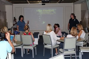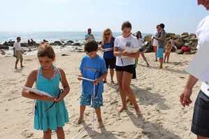 As a partner in Reef Check’s “Adopt-a-Reef” program, The Ritz-Carlton sponsors annual health checks of the reef ecosystem by volunteer citizen scientists trained by Reef Check. Of course two of our very own Reef Check Volunteer Divers with full on survey gear made a special appearance! Perfect timing as the children were pretending to go through two “transect lines” on the sand where they noted on their very own colorful data sheets the indicator species they encountered. Like celebrities, the Volunteer Divers were surrounded by a crowd who wondered about all the instruments hanging all over their wetsuits! The crowd quickly learned how funny looking calipers were used to measure abalone and how the data collected helps to monitor the health of the surrounding reefs. It reminded me of my childhood – before electronic games and gadgets were made – when “the great outdoors” was my learning environment. It instilled in me a sense of wonder and respect, two ingredients of great stewardship.