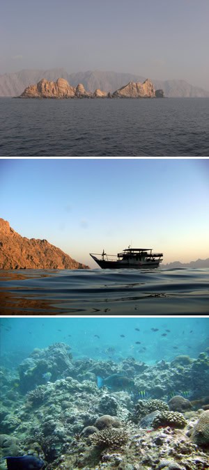 Reef Check is partnering with Biosphere Expeditions, an award winning eco-expedition company, to offer a unique, one-week, marine science research expedition to a beautiful, unexplored, coral reef area in the small, middle eastern country of Oman. Despite its location bordering the Arabian Gulf and Indian Ocean, Oman is a peaceful country and has never experienced the turmoil afflicting other countries in the region. A stable government led by an open-minded Sultan who promotes higher education for both sexes has allowed Oman to enjoy long-term peace and prosperity. The expedition is to Oman’s Musandam peninsula, known as the Norway of the Middle East because of its dozens of fjord-like bays bordered by towering mountains. The spectacular terrestrial scenery is only exceeded by the cornucopia of life found underwater.