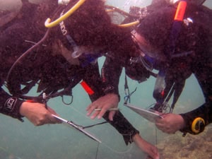 The Philippine Coast Guard (PCG) is responsible for implementing laws within the jurisdiction of Philippine waters, ensuring the safety for seafarers, and performing rescue operations when necessary. In addition, they have been tasked to protect the marine environment and its resources. And so to further increase their knowledge about marine life, the Coast Guard Special Operations Group (CSOG) headed by Cdr. Inocencio “Jun” Rosario PCG underwent a Reef Check training last December 16-20, 2013 at the Ligaya Resort and Dive Center in Mabini, Batangas.