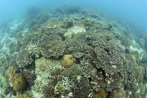 Coral bleaching and some coral damage were observed at a few sites but the impact was minor and localized.