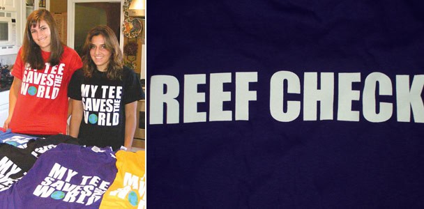 Amanda and Angela are happy to say Reef Check is one of their top sellers- “it is very exciting for us to know we are helping protect reefs worldwide and contributing to stop the endangerment of reefs.” If you would like more information, you can email them at savetheworldt@yahoo.com. Their website is currently under construction, but soon people across the country will be able to buy their charity t-shirts online!