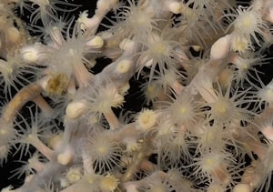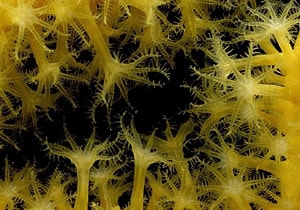 Polyps of Paramuricea clavata, yellow variety, bearing eight hairy tentacles