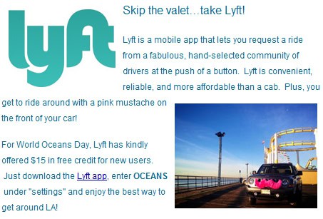 Download the Lyft App on your smartphone and enter OCEANS under “settings”