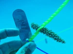 In addition to collecting Reef Check data on the health of the reefs at Parque Nacional Submarino La Caleta, the EcoDiver volunteers had an opportunity to work with Reef Check Dominican Republic’s Dr. Ruben Torres to establish a “nursery” for staghorn Acropora coral. Coral fragments from the Silver Banks were carefully transported to La Caleta and transplanted into our nursery in hopes of saving and regenerating this coral for growth efforts in La Caleta and other regions around the Dominican Republic.