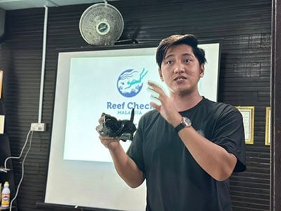 In March, Reef Check Malaysia conducted an online workshop on its sustainable tourism programs, which include Green Hotels-based assessments, Green Fins, and the Eco-Friendly Snorkelling Guide. The workshop aimed to introduce these initiatives to various stakeholders in Sabah, with over 60 participants in attendance.