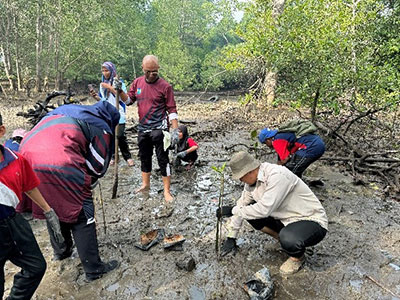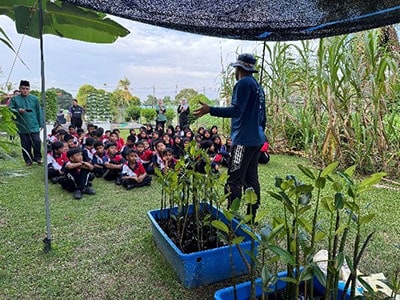 In February, 24 students from the same school, along with all teachers and three volunteers, participated in a mangrove planting session. After five months of nurturing the saplings in a nursery, they were now ready to be planted. A total of 70 healthy mangrove saplings were planted at a patchy mangrove area along the coast of Kampung Pasir Gogok, Johor. Some parents who were present joined in and learned about mangrove restoration efforts.