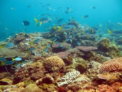 Reef Check recently completed work on the baseline Marine Protected Area (MPA) monitoring in Brunei, a small nation located on the north coast of the island of Borneo, in Southeast Asia. Located at the edge of the Coral Triangle near the world center of marine biodiversity, the reefs exhibit a very high biodiversity. Reef Check was requested by the Brunei Department of Fisheries (DOF) to carry out a survey of its coral reefs, most of which were placed inside a new network of MPAs that was implemented January 1, 2012. Each of the reefs located within the MPAs is a no-take fishing area. The baseline survey will allow the DOF to track changes and hopefully improvements in the health of the country’s coral reefs over time.
