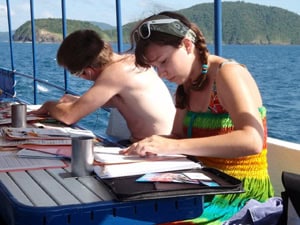 For many of the interns, like Ryan, a college student from Lincoln, Nebraska, diving in tropical waters was the best form of “immersion learning” and was a life changing experience. Drew, a nonprofit manager from Westport, Connecticut, said, “My experience in Thailand will stay with me and has made me want to explore reefs forever.” Other interns such as Karla, a school teacher from Richmond, Virginia, commented that she had a new found appreciation for marine scientists – “Doing a survey can be hard work when the wind is blowing and the sea is rough!”
