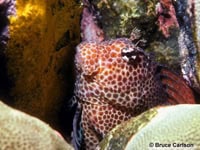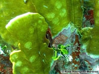 But one part of this mystery remains: similar scars on Millepora complanata have been observed by scientists from Bermuda, the Florida Keys, the Mexican Caribbean and Pernambuco, Brazil. So far, no one has identified the fish that creates these spots. Exallias brevis does not occur in the Caribbean but it has close relatives there. Charles Delbeek mentioned that Ophioblennius atlanticus has a very similar mouth structure to E. brevis and lives in close proximity to stands of Caribbean fire coral.