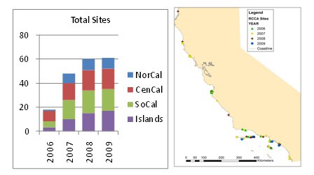 In addition to all the new partnerships and accomplishments, our successes would not be possible without the support of our incredible group of citizen scientist divers. Since the start of the program in 2006, 354 individual divers have taken part in RCCA surveys. Each one of those divers has taken action to help improve marine management in California. We even have 16 divers who have just completed their fourth season of surveying! We are a more well known and respected community-based monitoring network and I look forward to another amazing year in 2010.