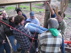 We finished our Monday afternoon meetings with some team building exercises that had us swinging on ropes, balancing on a huge teeter-totter and passing people over our head through a giant “spider web.” This was an excellent excuse to break out of our meetings for a while, get to know one another more and learn to work together better. Plus it was a lot of fun! Another enjoyable activity was the 3rd annual top secret Maze competition, with Geoff as the winner this year. It’s always an entertaining event!