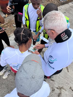 In 2021, L’Asso-Mer became coordinator for Reef Check Martinique, which is now comprised of four survey stations, among which is a snorkeling station created in 2023 and named after recognized marine scientist and lifelong educator of local youth, Dr. Romain Ferry. This station, easily accessible but full of marine life, opened the way for the “Ti Moun” program.