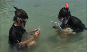 “We had the students practice on the beach by using Reef Check’s indicator species marine cards, and in the shallow water, before attempting to survey a pre-determined transect.”