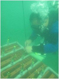 In November 2010, Reef Check Malaysia and YTL hotels embarked upon a coral transplantation method that has never been attempted before in Malaysia with the help of UKM scientist, Kee Alfian. The method involves collecting coral fragments and “planting” them in a nursery to allow them to stabilise and grow before final transplant. The key to our approach is to actively maintain the nurseries while the coral transplants are stabilising, keeping them free of silt and algae. In this way, mortality will be reduced, resulting in a more effective rehabilitation.