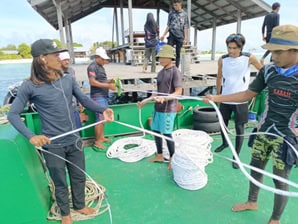 Our colleagues in Semporna, together with representatives from Jeti Pelancong Semporna, the Semporna Professional Divers Association – SPDA, Semporna District Office, youth leaders from the Larapan Marine Conservation Groups, and Pulau Sipadan Resorts & Tours, deployed four mooring buoys in Timba-Timba Island. These sites are famous with tourists, who come over for snorkelling or diving. Recognizing the possible damage caused by anchor impact, the installation was done promptly to solve the problem and to promote the use of mooring buoys at other sites too. Each of the buoys are able to accommodate 3 to 5 boats at a time, as they are supported by sinkers made from metal drums filled with cement.