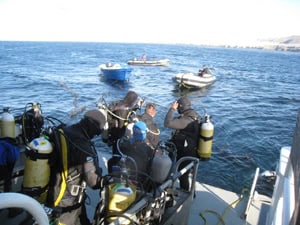 A fines de Julio 2011 regresé a Isla Natividad en la costa oeste de Baja California a llevar a cabo la recertificación anual de los miembros de la Cooperativa Buzos y Pescadores. Estuve acompañada de mi compañera de trabajo Mary Luna. En lugar de viajar a la isla como normalmente lo hacemos, ésta vez tuvimos una experiencia única al ser parte de un viaje inaugural de buceo por embarcación live-aboard.