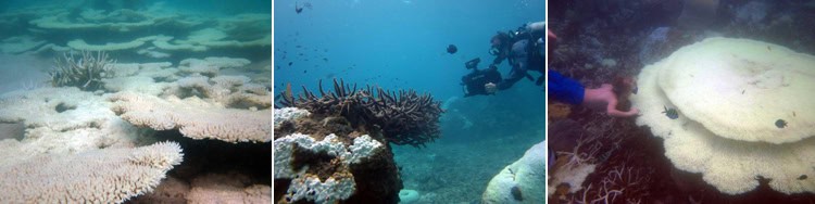 2010 was a special year- the hottest in recorded history on earth. Extreme temperatures, low tides and intense solar radiation for abnormally extended periods of time combined to place enormous pressure on this small island. These conditions led to extensive coral bleaching, with all reefs around the island affected. During the early part of summer, through April and May, there was little respite and large amounts of coral bleached. It was almost as if a blanket of snow had settled on the reef.