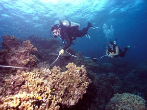 While most scientific monitoring methods used in ecology “violate” some of the prerequisites of parametric statistics we can still analyze tropical data using parametric tests. In addition, there are many non-parametric tests available to analyze RC data. Why do ecologists not use a strictly random sampling design? A true random sampling design is very costly and may have its own biases when for example, by chance, many randomly chosen sample points cluster in one area. Thus we have chosen the most efficient method for Reef Check that also allows us to use parametric statistics. Of course, those who prefer to use shorter reels – 10 m or 20 m long transects may lay these on separate sections of reef. In some areas with patch reefs or spur and groove formations – this will be the logical choice.