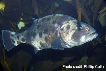 If we record them and they are not associated with a transect, we cannot determine their population density; so why do we record them nevertheless? This is the case for one fish, two invertebrate and four algae species. The reason for recording them this way is different for the algae and animal species. The fish we record anywhere is the giant sea bass (Stereolepis gigas) and the two invertebrate species are white (Haliotis sorenseni) and black (Haliotis craherodii) abalone. These three species are all listed as endangered species. Therefore, noting the occurrence of these species is critical in order to record the presence of these rare species. Over the six years of data collection we have observed only 12 occurrences of giant sea bass and have not seen any black or white abalone.