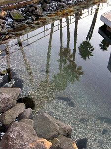 Millions of sardines were found belly-up in the north side of King Harbor the morning of March 8, 2011. This massive amount of dead fish (>140 tons) has caused a huge clean-up effort and quite a smelly mess for the slip owners and residents around the harbor.