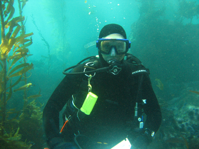 I’ll never forget my very first multi-day trip on the small Department of Fish and Wildlife boat in fall of 2008. These trips were typically a team of 4 or 5 divers, plus one boat captain on a small boat. On the first day, after a somewhat rough crossing to Santa Rosa Island, we completed our first survey site by doing a few dives as a team of 4 divers. We were feeling pretty accomplished, had anchored up for the night and were getting ready to cook up a delicious dinner when our UCSB dive buddy told me he felt like he was coming down with the flu – and we had three more days of diving planned on this small boat. After a quick chat with the captain, we quickly decided to skip dinner, pull anchor and drive all the way back to Ventura in the dark to drop off our sick diver. After a quick trip to the grocery store in the middle of the night for supplies, we thoroughly sanitized the boat, spent a few hours sleeping in the harbor and then drove back to the islands at sunrise. Our mighty team of three divers (me, Dirk and Bill Golden) and Captain Ray spent 3 long, but successful, days surveying the islands. I have fond memories of our final day where I was met with amazing conditions and a friendly harbor seal for some unforgettable dives on the backside of Anacapa Island with my trusty team of buddies.