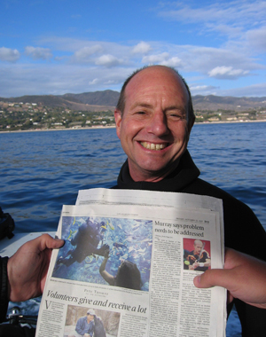 Dirk didn’t look for recognition for his efforts – he was a humble guy who just liked to get the work done well. And wow, did he get the work done! For several years in a row, Dirk completed the most survey dives of all the volunteers. He received not only the coveted golden slate award, but also the golden transect, golden calipers, golden fin and golden abalone. I ran out of things to spray paint gold! He wasn’t in it for the awards, but I wanted to be able to show my appreciation for all his hard work and dedication and he was always a good sport by accepting another homemade award. Finally, in 2013, Dirk was named the Citizen Scientist of the Year at the Reef Check Gala, where he got a proper award and I finally got a chance to meet his family and thank them for sharing Dirk with all of us.