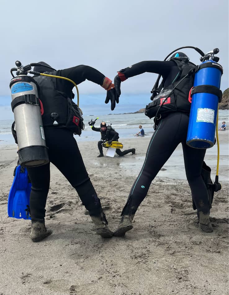 Once familiar with the basics of the NAUI scuba course, students were ready for the practical portion of this course which consisted of 3 weekends: one weekend at CV Starr Center pool in Fort Bragg for confined water practice, and two weekends in the ocean at Van Damme State Park and Caspar Cove. In the ocean, students practiced scuba skills, buoyancy, dive planning, and rescue skills. There were some challenges for each student, but with guidance from staff instructors each student was able to complete the required skills and build their confidence underwater.