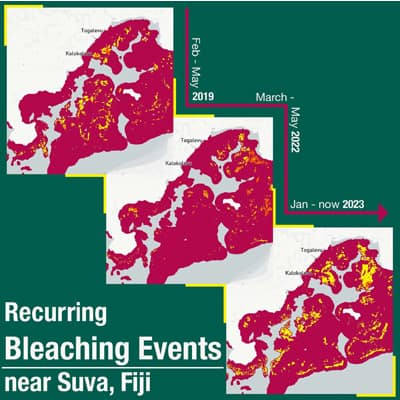 See the current bleaching event affecting Fiji here and other large-scale bleaching events from around the world.