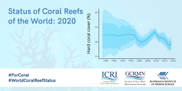 This report is the flagship product of the Global Coral Reef Monitoring Network (GCRMN) and describes the status and trends of coral reefs worldwide. This sixth edition of the report is the first since 2008, and the first based on the quantitative analysis of a global dataset compiled from monitoring data contributed by more than 300 members of the network. The global dataset spanned more than 40 years from 1978 to 2019, and consisted of almost 2 million observations from more than 12,000 sites in 73 coral reef countries around the world.