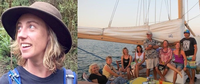 Right: Kristy Finstad joined by sailing friends, her husband, and Reef Check buddies, Megan Wehrenberg and Jonah Mulski