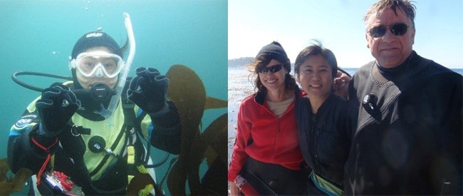 Liz Monks, Yuko Hatano and Vince Christian on a Reef Check dive at Monastery Beach