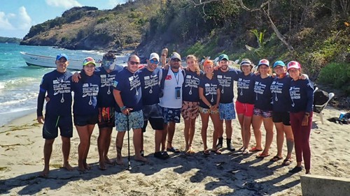 A team of 11 Reef Check EcoDivers, two scientific leaders from Corales de Paz and two dive leaders surveyed four of the most frequented dive sites on the island: Mantas, Tetes, Bajo de San Felipe and Loro Town. In general, the monitoring results show that the abundance of parrotfish (Scaridae) and surgeonfish (Acanthuridae) were similar at all sites; these are herbivorous fish that control macroalgae. The abundance of grunts or margates (Haemulidae) was also similar at all the monitored sites. There was a greater abundance of groupers (carnivorous fish of the Serranidae family) of more than 30 cm in length when compared to other sites monitored by the Reef Check Colombia program since 2017, such as San Andres Island and Santa Marta. Groupers are commercially important and show the wealth of usable resources still preserved for the people of the island.