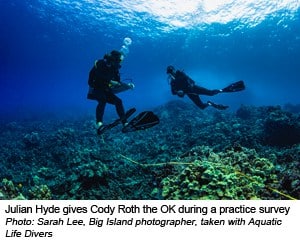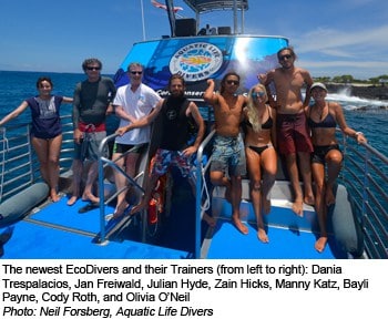 Four EcoDivers from the Coral Reef Education Institute successfully completed their Training of Trainers: Heather Howard, Paul Badgley, Tara Brooks and Nick Pacheco. Trained as EcoDivers by Gregor Hodgson in October of last year, these newly minted Trainers worked very hard to complete their required surveys in time for the Training, and had many good suggestions to improve future Trainings and Training Materials. Six divers from Aquatic Life Divers successfully completed the EcoDiver Course: Neil Forsberg, Bayli Payne, Manny Katz, Cody Roth, Zain Hicks and Olivia O’Neil. Both teams from the Big Island have big plans to contribute to Hawai'i’s coral reef monitoring and management efforts, and to play a significant role in diver education and community outreach. In particular, the Coral Reef Education Institute plans to collect data to support Hawai'i's 30 by 30 initiative, which is committed to effectively manage 30% of Hawai'i’s nearshore ocean waters by 2030.