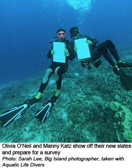 Aloha! After almost a 10 year dormancy in Hawai'i, Reef Check is very happy to welcome the newest Trainers, as well as EcoDivers, on the Big Island.